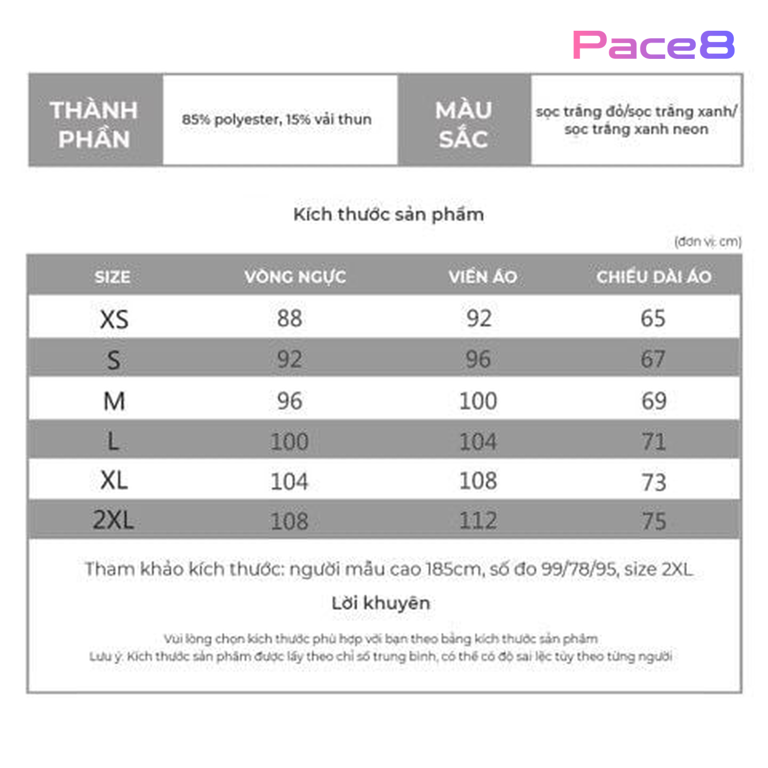 Kích cỡ | XS, S, M, L, XL, 2XL |