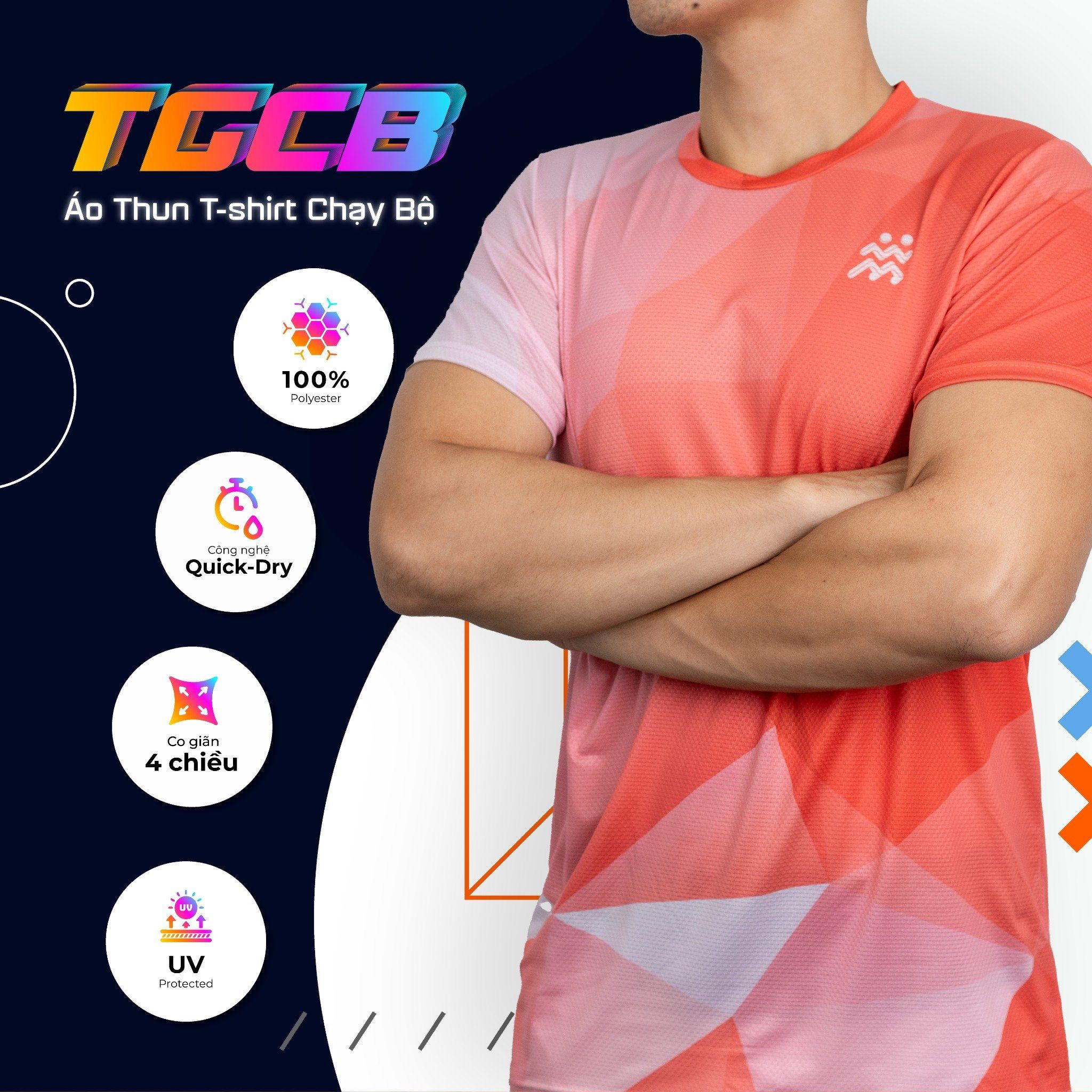 Áo Thun T-shirt Chạy Bộ Nam TGCB 100% Polyester, Thấm Hút Tốt, Nhanh Khô - Cam