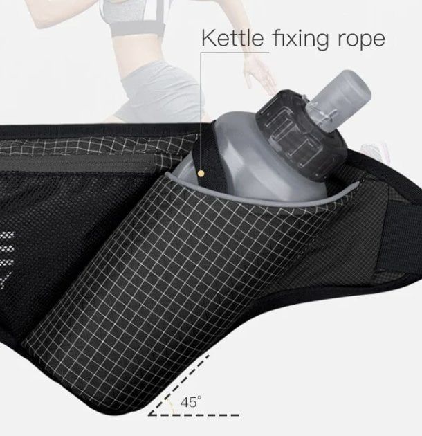 • Đai có ngăn chứa bình nước 450ml với thiết kế độ nghiêng 45 độ ôm sát, giúp giữ bình nước chắc chắn, không lo rung lắc hay rơi bình khi vận động.