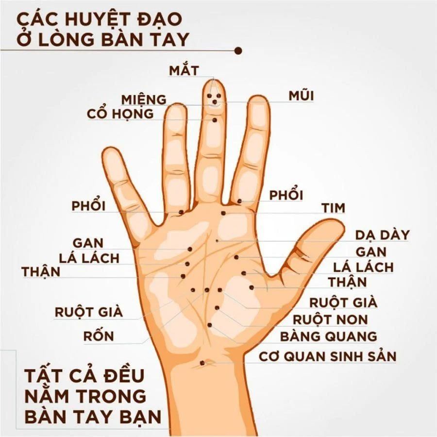 • Giảm Căng Thẳng: Kích thích và thư giãn các huyệt đạo bàn tay giúp giải phóng endorphins và serotonin, làm giảm căng thẳng, lo âu và giảm đau cơ do vận động.