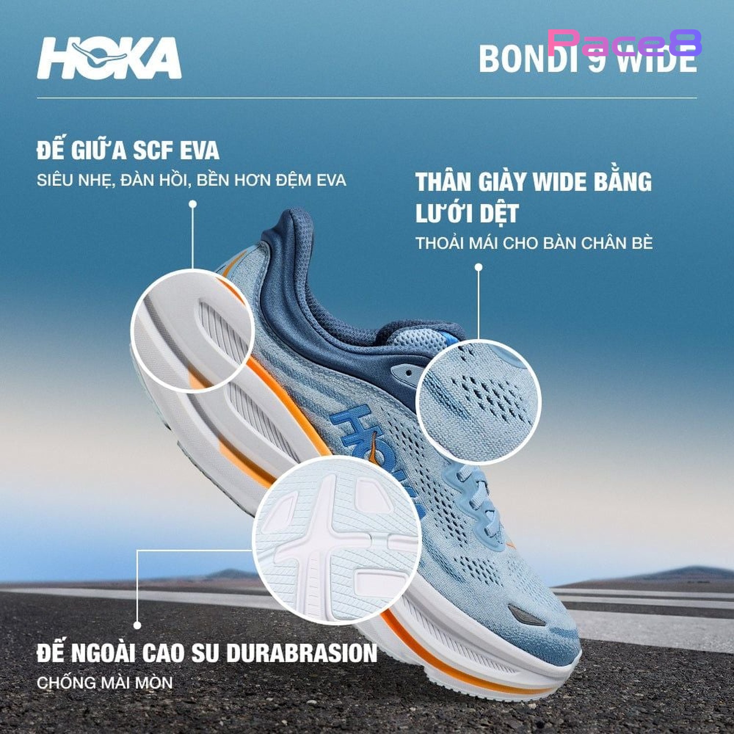 Giày Chạy Bộ Nam Hoka Bondi 9 Wide - Drizzle / Downpour