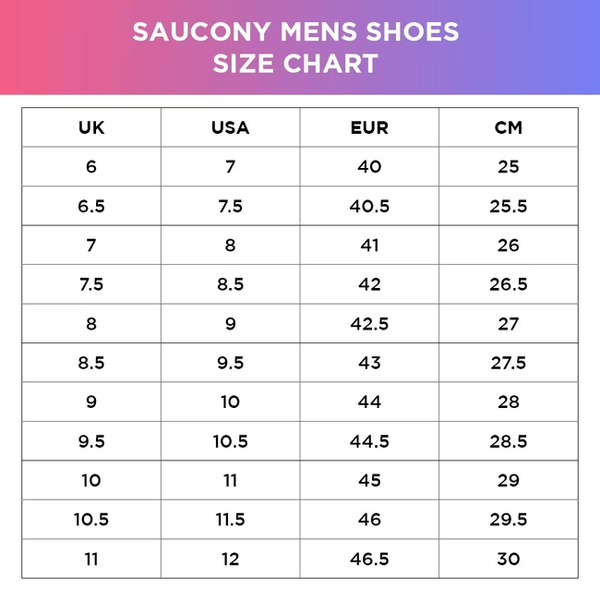 Dưới đây là bảng size tham khảo cho giày chạy bộ Saucony Triumph 21: