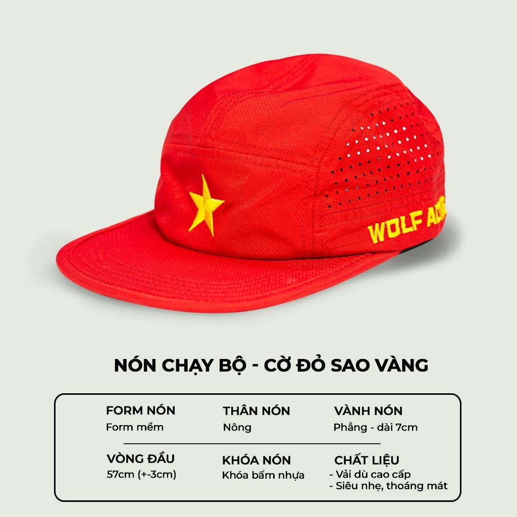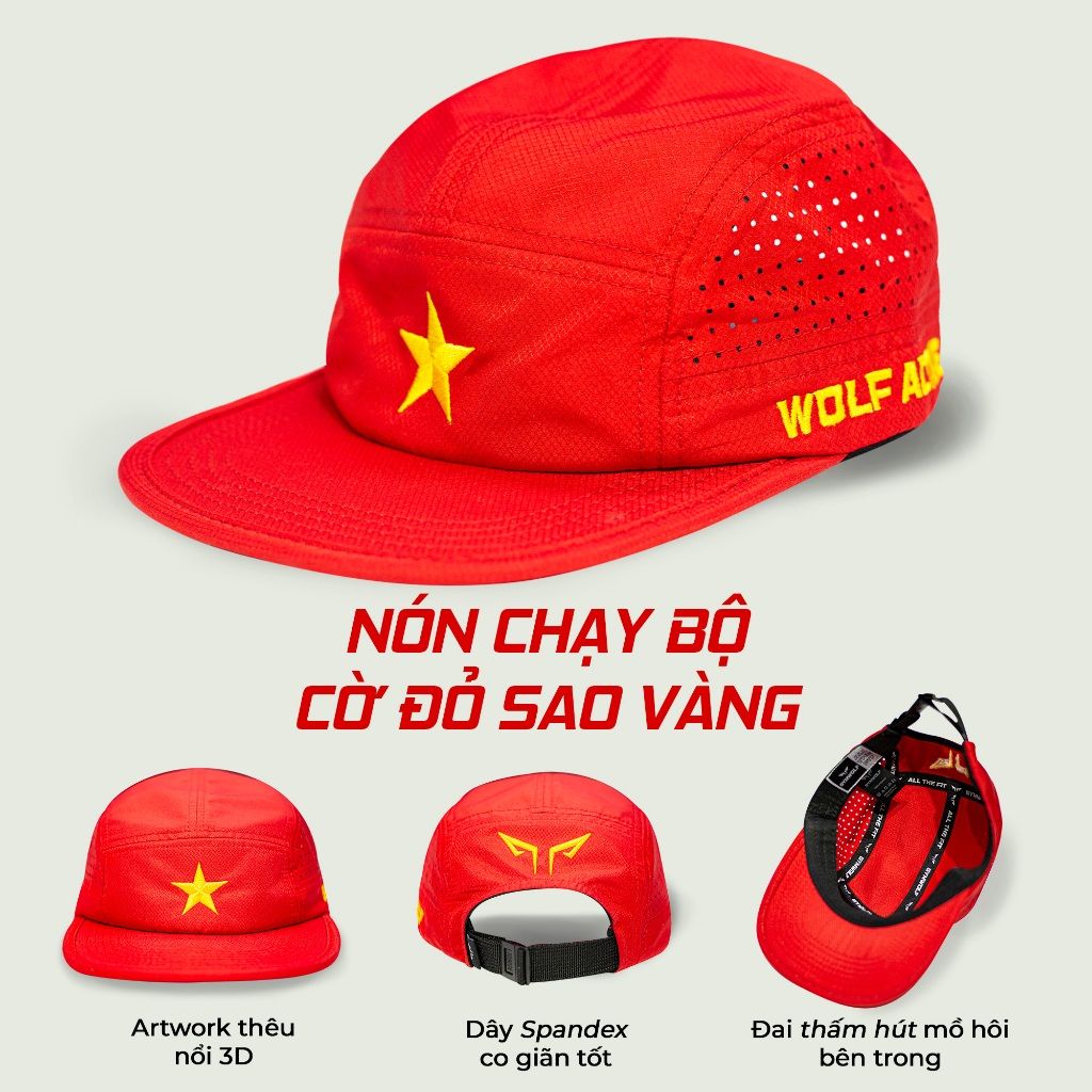 Nón Chạy Bộ Cờ Đỏ Sao Vàng Wolf Active W178, Nón Thể Thao Nam Nữ Nhẹ, Nhanh Khô, Thoáng Khí