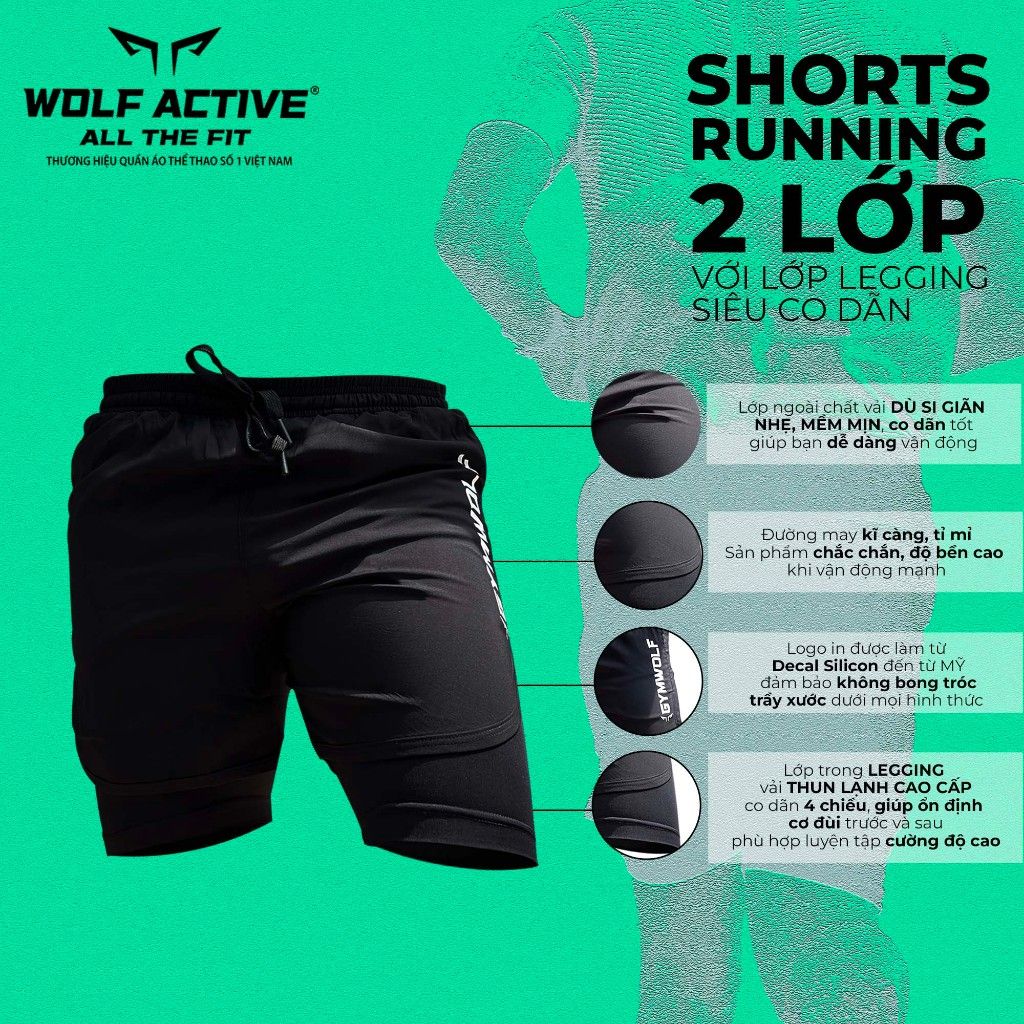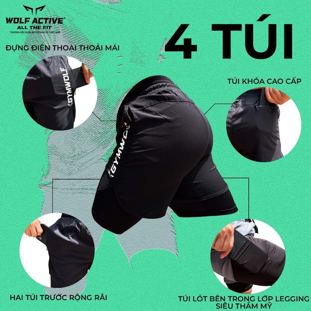 Quần 2 Lớp Fast & Fly W56 , Quần Thể Thao 2 Lớp Cho Gym Nhiều Túi, Chạy Bộ, Đạp Xe Co Giãn 4 Chiều