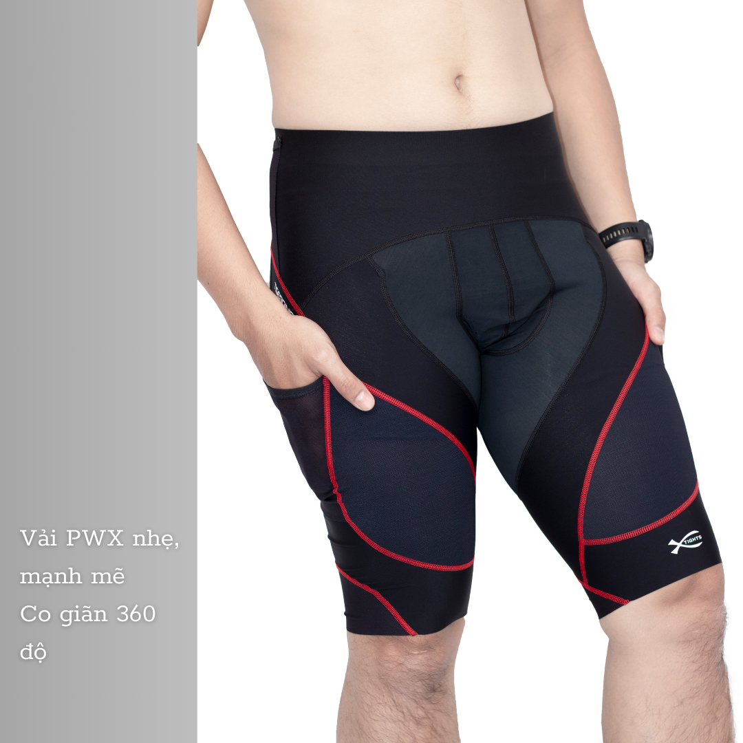 Quần Đùi Bó Cơ Nam RUNTIGER 7002M - Màu Đen Đỏ