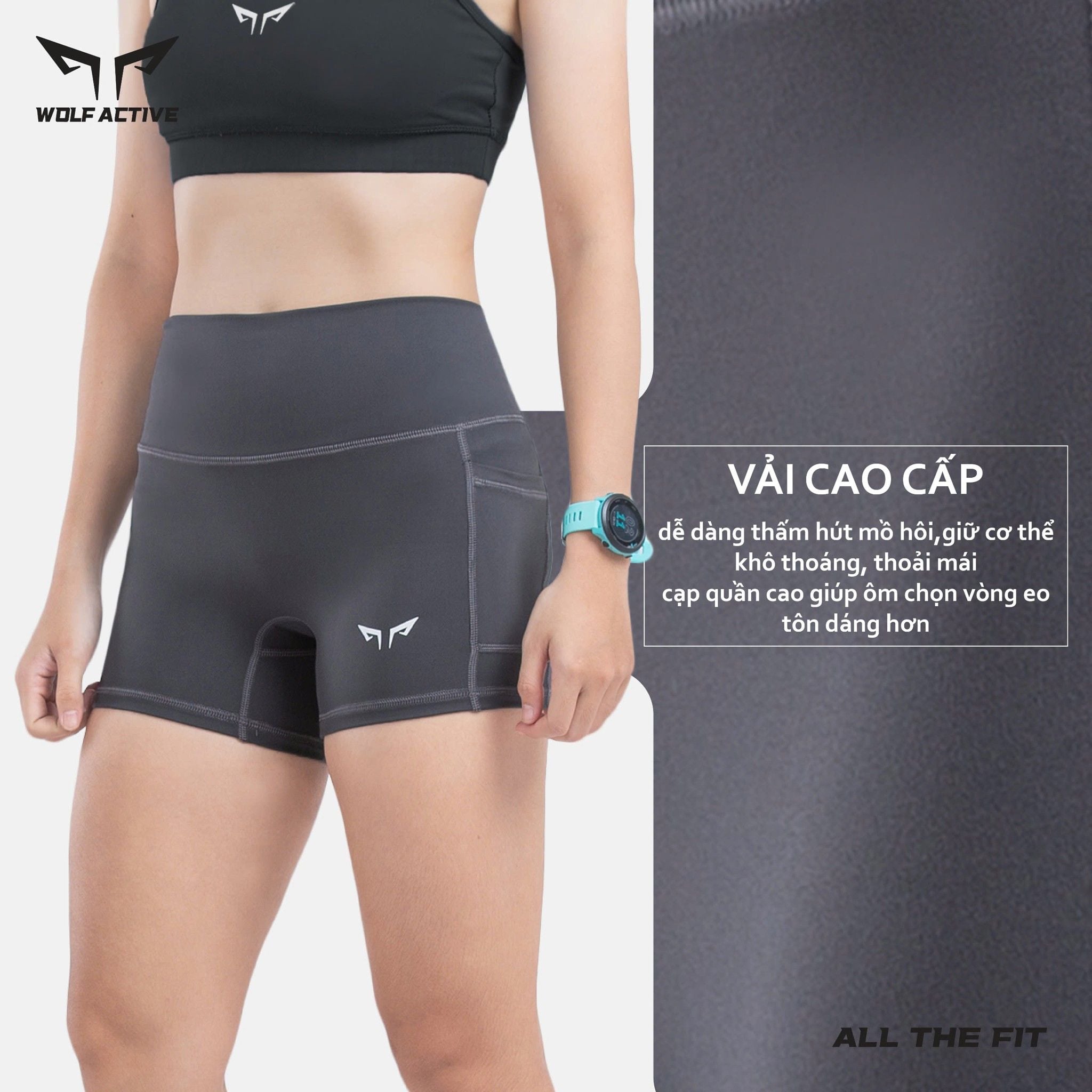 Quần Short Chạy Bộ Nữ, Tập Gym Có Túi Wolf Active Flex V1 180 , Chất Vải Mềm Mịn, Co Giãn 4 Chiều